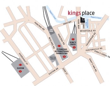 Kings Place is situated just a few minutes walk from Kings Cross and St Pancras stations. Please click here for detailed directions.